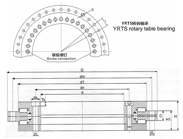 YRTS高速转台轴承系列具有相对YRT标准系列转速高,并且整个转速范围内摩擦力矩低,并且均匀,外形结构尺寸与YRT系列相同,但内部结构于YRT系列相对不同,此系列在直驱电机驱动下使用较为合适。